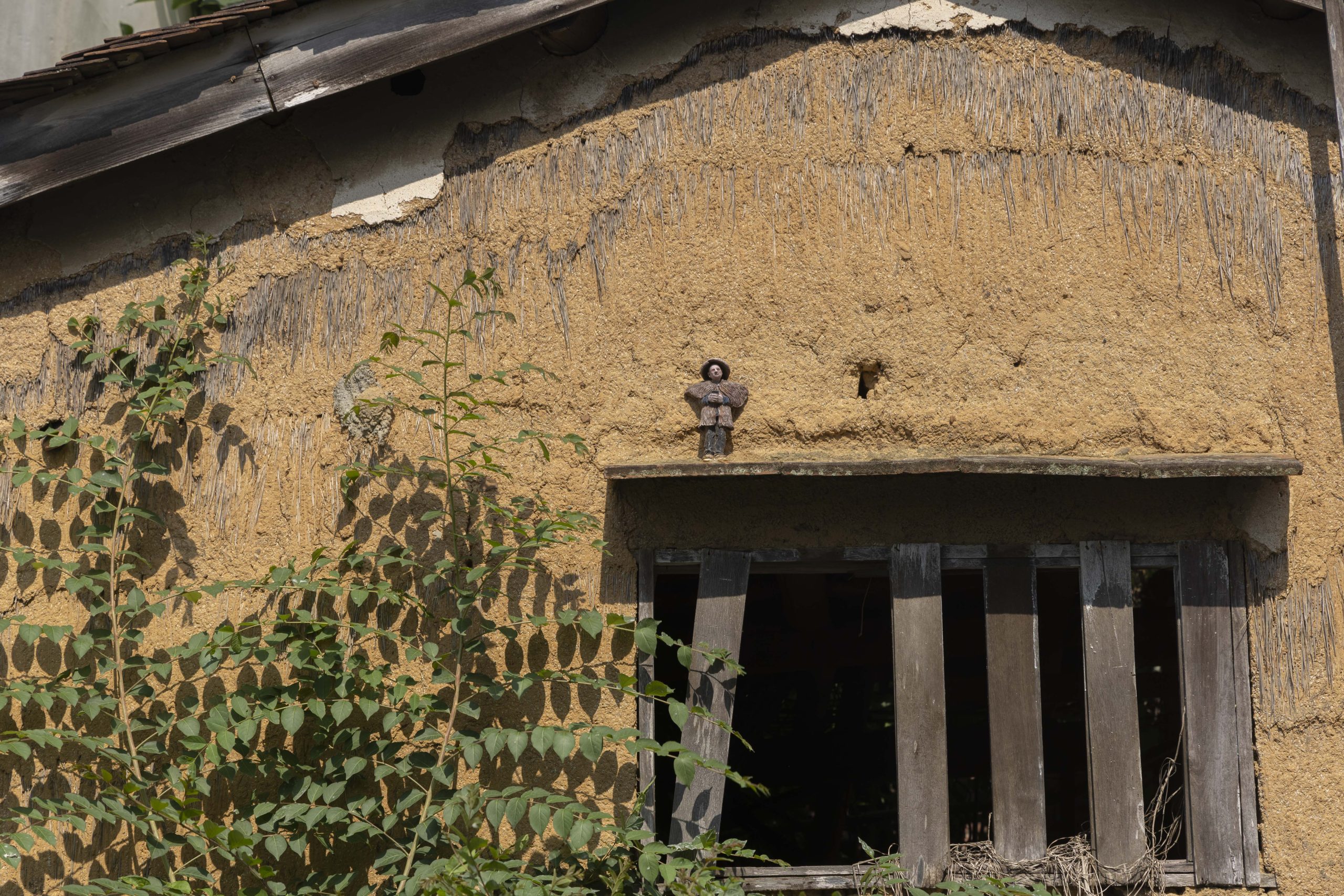 ▴ 從北埔忠恕堂走到水井茶堂,會經過2019年第一屆浪漫台三線藝術季所留下的作品痕跡,《街道敘事》是我至今難忘的作品,每次去北埔還是會找一下隱藏在土角厝當中的小人偶。