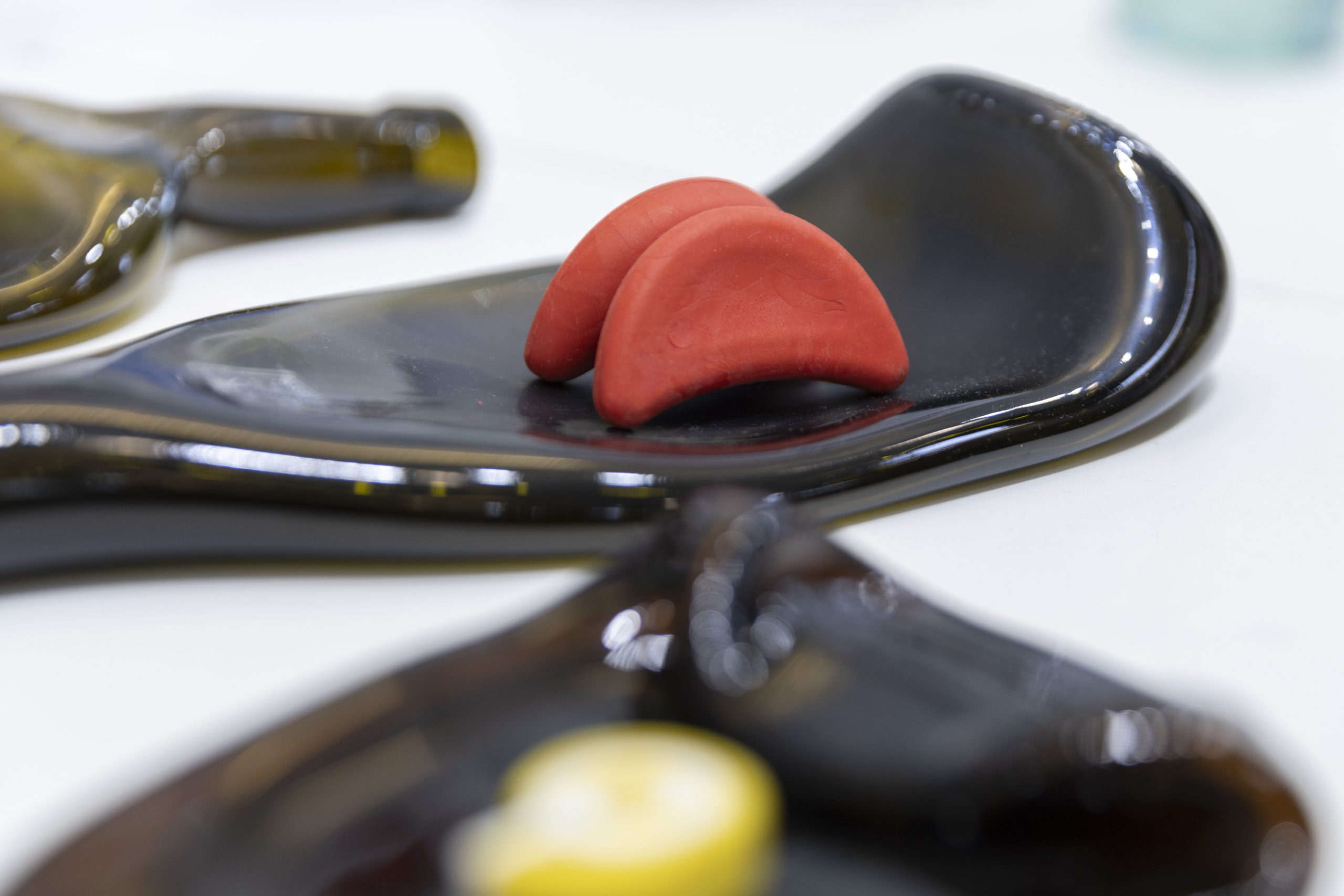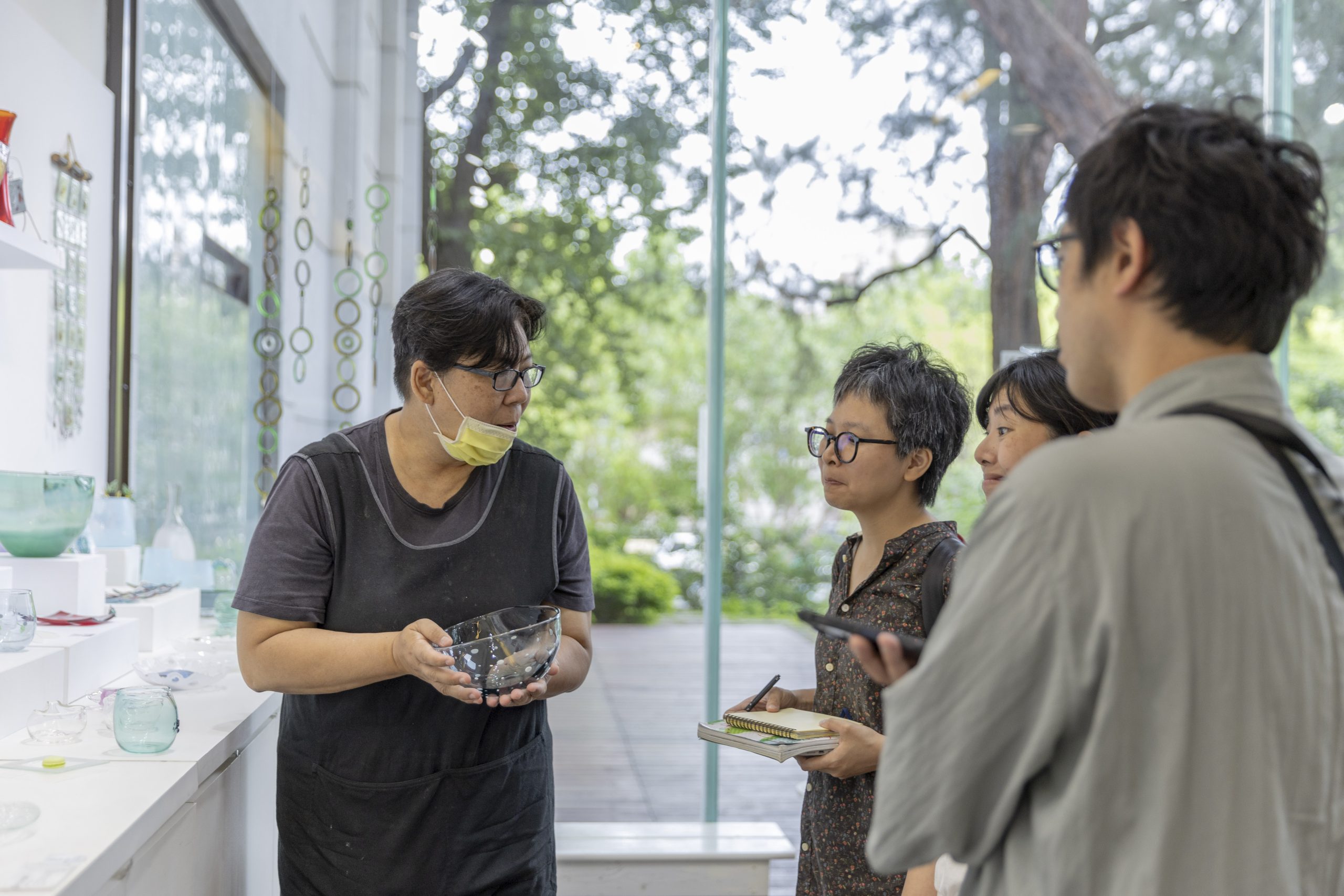 ▴ 由於在玻璃工藝館選品店見到重新塑壓玻璃酒瓶的商品,我們拜訪了Joy Huang(黃瓊儀)老師,更是初次理解新竹在地玻璃藝術創作。